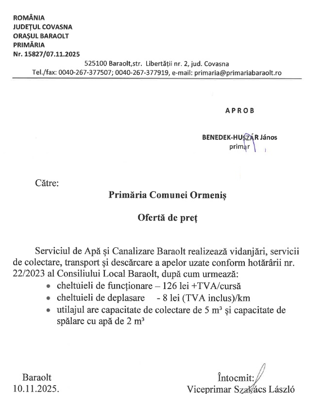 Ofertă de preț VIDANAJRE - S.A.C. Baraolt